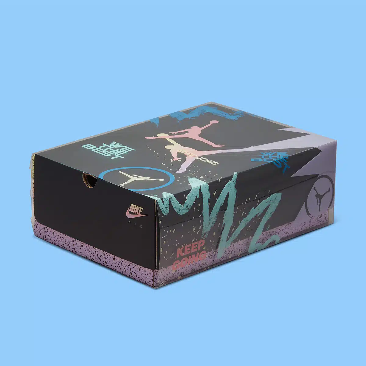 Au moment où les premiers visuels des différentes paires de la collection ‘’We The Best’’ ont fuité sur les réseaux sociaux, nous nous sommes demandé si au moins l’une d’entre elles serait commercialisée chez nous, en France. Nous savons désormais que oui. Cette fameuse Air Jordan 5 ‘’Crimson Bliss’’ a effectivement fait son apparition sur l’application SNKRS, pour le grand plaisir des amateurs de sneakers d’inspiration b-ball. Inspirée de la dextérité légendaire de Michael Jordan, cette dernière se dresse dans une robe en daim rose saumon agrémentée d’empiècements centraux en TPU translucide assortis. A l’arrière du pied gauche, sur le talon, on retrouve l’inscription ‘’We The Best’’ en lieu et place du logo Nike Air historique qui a en revanche été conservé sur le pied droit. Le design est délicatement relevé grâce à une touche de gris métallique réfléchissant sur la languette des lacets. Dans le même temps, on observe des notes de bleu ciel sur les éléments du branding évoqués précédemment. Celui-ci est hérité de la doublure interne matelassée et est rappelé sur les dents de requin de la midsole, qui est vêtue pour sa part d’un manteau blanc cassé. Une outsole en demi-teinte et partiellement translucide finalise le look imaginé par DJ Khaled.